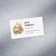 Magnetic business card with a fall themed image. Orange and white pumpkins surrounded by fall leaves and orange flowers.