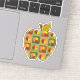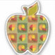 Four squares are decorated with leaves and pumpkins in fall tones of red, orange, yellow, and brown. White stitching adds a decorative touch, giving the repeating pattern the appearance of a quilt, creating a perfectly cosy feeling for autumn. The shape of an apple creates a mask for the design to add a final seasonal touch.
