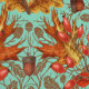 Hand-painted rabbit and autumn flora- leaves; mushrooms; acorns and berrries