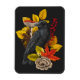 Hand-painted illustratin of a raven and autumn botanicals-leaves, mushrooms and berries