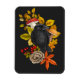 Hand-painted illustratin of a raven and autumn botanicals-leaves, mushrooms and berries