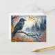 Postcard features a crow or raven standing on a branch in an outdoor woods setting in autumn.