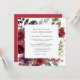 Beautiful botanical square wedding invitation with a red floral border. Bright red roses and deep burgundy flowers make this a perfect autumn wedding invitation.