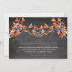 Sienna Red, Rusty Orange And Burnt Brown Leaves Knotted Branch Love Trees Double Sided Autumn / Fall Wedding Invitation / Dinner Reception Against A Black Chalkboard Background.