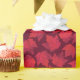 This wrapping paper features a pattern of red autumn maple leaves on a darker red background.