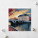 This stylized illustration captures a serene European riverside scene framed by warm autumn foliage and classic architecture. The balanced composition highlights a grand riverside building, an elegant stone bridge, and rich reflections across calm water. With a refined poster-style aesthetic, simplified shapes, and a striking seasonal color palette, this artwork delivers a timeless, atmospheric mood perfect for lovers of travel-inspired cityscapes, architecture, and fall-themed visual storytelling.