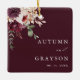 Autumn Romance Elegant Burgundy Wedding Photo Ceramic Ornament