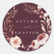 Autumn Romance Floral Wreath Wedding Burgundy Classic Round Sticker