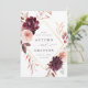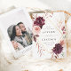 This elegant wedding save the date invitation features a watercolor flower wreath of dahlias, garden roses, and peony in burgundy red, maroon, blush pink over fall leaves with a photo on the back. For more advanced customisation of this design, please click the BLUE DESIGN TOOL BUTTON. Matching items are also available.