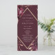 This wedding ceremony program features a watercolor flower wreath of dahlias, garden roses, and peony in burgundy red, maroon, blush pink over fall leaves with a faux gold diamond shape frame. For more advanced customisation of this design, please click the BLUE DESIGN TOOL BUTTON. Matching items are also available.