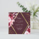 Celebrate a romantic autumn wedding with this elegant floral invitation featuring a gold geometric diamond frame, watercolor burgundy dahlias, blush peonies, and rustic fall foliage. Perfect for outdoor, boho garden, or country weddings with a cosy, vintage touch.