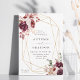 This wedding invitation features watercolor flower bouquets of dahlia, garden rose, peony, pampas grass, and hydrangea in burgundy red, terracotta, blush pink over fall leaves with a faux gold geometric frame. For more advanced customisation of this design, please click the BLUE DESIGN TOOL BUTTON. Matching items are also available.