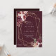 This wedding invitation features watercolor flower bouquets of dahlia, garden rose, peony, pampas grass, and hydrangea in burgundy red, terracotta, blush pink over fall leaves with a faux gold geometric frame. For more advanced customisation of this design, please click the BLUE DESIGN TOOL BUTTON. Matching items are also available.