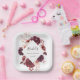 This bridal shower paper plate features a watercolor flower wreath of dahlias, garden roses, and peony in burgundy red, maroon, blush pink over fall leaves with a diamond shape frame. For more advanced customisation of this design, please click the BLUE DESIGN TOOL BUTTON. Matching items are also available.