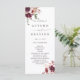 This wedding ceremony program features watercolor flower bouquets of dahlias, garden roses, and peony in burgundy red, maroon, blush pink over fall leaves. For more advanced customisation of this design, please click the BLUE DESIGN TOOL BUTTON. Matching items are also available.