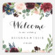 This autumn rustic burgundy calligraphy wedding welcome square sticker is perfect for a modern wedding. The design features burgundy, red, navy, blue and blush radiant and graceful hand-painted flowers, inspiring natural beauty.