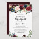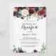 This autumn rustic modern calligraphy wedding breakfast invitation is perfect for a simple family and friends day after the wedding get together breakfast. The design features burgundy, red, navy, blue and blush radiant and graceful hand-painted flowers, inspiring natural beauty.