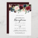 This autumn rustic modern calligraphy wedding reception invitation is perfect for a simple post elopement party. The design features burgundy, red, navy, blue and blush radiant and graceful hand-painted flowers, inspiring natural beauty.