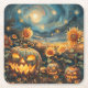 Autumn Scene with Jack-o'-lanterns and Sunflowers Square Paper Coaster