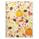 Autumn seamless background with pumpkins, acorns, pine cones, rowan and Oriental Bittersweet, vintage illustration on white background.