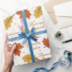 A Colourful Autumn Birthday Or Any Type Of Event For The Fall Season. A Designed Wrapping Paper In Orange And Yellow Falling Leaves