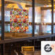 Seamless Autumn Seasonal Window Cling / Decal featuring colourful pumpkins, flowers and autumn motives styled in seamless pattern of stainless glass.