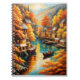 Capture the tranquil beauty of an autumnal mountain village with this enchanting illustration. The image showcases a serene riverside scene, where charming wooden houses nestle among vibrant orange and golden trees. Reflecting the warm hues of the foliage, the calm water mirrors the picturesque landscape, while small boats gently float, adding to the idyllic atmosphere. Perfect for note cards and postcards, this artwork evokes a sense of peace and natural splendour, making it an ideal choice for conveying messages of tranquillity and warmth.