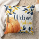 Invite a touch of calm and celebration into your space with this reversible fall throw pillow. One side features a watercolor pumpkin surrounded by golden and blue leaves framing the message “Welcome Autumn.” Flip it over to reveal a joyful burst of orange pumpkins, playful dots, and scattered leaves on a crisp white background. This design captures both the graceful charm and cheerful spirit of the harvest season — a perfect accent for cosy living rooms, nurseries, or seasonal storefront displays.