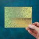 Autumn shades of green, yellow, and orange create an abstract wedding design with a shimmering texture effect. You can personalise this template with your information and make further edits for customisation. It can be used for various occasions such as anniversaries, Valentine's Day, birthdays, and more. Matching products are also available.