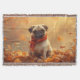“Autumn Snuggles with Pugsy” Cute Autumn Pug Throw Blanket