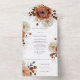 Introducing this exquisite All-in-One wedding invitation featuring a delicate floral design in the rich and warm hues of autumn. This beautifully crafted invitation is perfect for couples seeking a touch of elegance and romance for their fall wedding celebration. The All-in-One wedding invitations are both beautiful and practical by combining the wedding invitation with an easy to remove perforated RSVP postcard. They are also quick and easy to prepare for mailing. Simply address the invitation, fold the back flap and seal with the included clear stickers. Once your guests receive the pre-addressed invitation they simply tear off the perforated RSVP card and drop it in the mail.