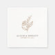 This custom cocktail napkin features a hand drawn sprig of autumn leaves above space for the couple's names and their wedding date. They're perfect for a fall wedding reception or rehearsal dinner.