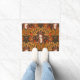 Autumn squirrel on dark brown doormat