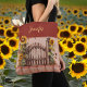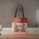 Do you love fall colours of orange and rust, golden sunflowers, peachy plaid, and rustic fences? Is autumn one of your favourite seasons? This seasonal design is great for hauling fall goodies or just putting you in a mood for crisper weather and cooler temperatures. It features sunflowers along a fence, against a background of peach, with dark orange plaid and rust trim. It also features a monogram - type your initials or name over the placeholder in the Personalise section.