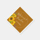 Pretty Autumn/ Fall wedding paper napkin features watercolor sunflower bouquet on golden brown background with white customisable text blocks in modern fonts