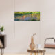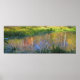 This gorgeous poster features a photo taken on a brilliant late afternoon day in autumn. The sun cast luminous wavering reflections into the marshy water creating an impressionistic palette of gold, yellow, orange, pink and green foliage mixed with the deep blue sky and white aspen trunks. Wild swamp grass circled the pond.
