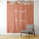 An autumn terracotta wedding photo backdrop. Personalise it with your names and wedding date. Designed for you by Blackberry Boulevard.