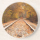 Coaster featuring "Autumn Tracks" image.