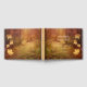 This autumnal themed rustic wedding memories guest book features the image of a peaceful, tree-lined walking trail resplendent in stunning fall colours in shades of golds and reds - semitransparent graphics in the shape of maple leaves line the right edge - by katz_d_zynes