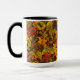 Hand-drawn autumn pattern featuring mushrooms,various berries, fallen leaves and bugs