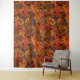 Hand-drawn autumn pattern featuring mushrooms,various berries, fallen leaves and bugs