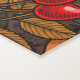 Hand-drawn autumn pattern featuring mushrooms,various berries, fallen leaves and bugs