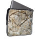 The sleeve is made of nice feeling material and seems very durable. I'm not sure how easy it'll be to clean, but the construction seems sound and the fabric is quick thick. I also like the double zipper. The printing is lovely and appears durable. The white on black contrast is nice, and the design very elegant.