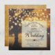 This beautiful wedding invitation features an autumn tree with strings of lights at dusk printed on faux parchment vintage aged paper. The beautiful hues of gold and brown make it perfect for a rustic or country wedding.