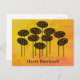 Happy Birthday against an autumn sky filled with woodcut trees.