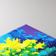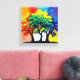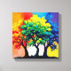 This digital artwork showcases three stylised trees, each a unique expression of colour and form, set against a brilliantly hued abstract background. The trees, rendered in simplified silhouettes, become a canvas for a spectrum of colours, ranging from fiery reds and oranges to sunny yellows, lush greens, and cool blues. The background echoes this vibrant palette, blending into a dynamic wash of blended hues, creating a sense of depth and atmospheric light. The artwork emphasizes colour and form, celebrating the beauty of nature through an expressive and imaginative lens. The textured surface adds a tactile dimension to the image, enhancing its visual richness. This piece is a bold exploration of colour and nature, perfect for adding a touch of vibrant energy and contemporary style to any space.