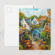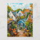 Autumn Village with Pumpkins and Cottages Painting Postcard