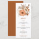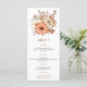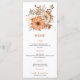Autumn watercolor florals Foliage Wedding Menu. Beautiful watercolor florals and foliage in autumnal shades of brown and cream, with a coordinating terracotta brown background on the back. The typography is in stylish lowercase and easily personalised to your own details.