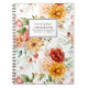 Customizable floral notebook featuring floral bouquet of blush pink, yellow and red peonies, roses and daisies with greenery accents. Personalize by adding names and other details. This botanical notebook will be perfect as a personalized gift for Christmas, birthdays and graduations.