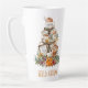 A cute watercolor tiered tray loaded with pumpkins and coffee mugs with spice sticks, with pine needles and fall flowers. When the weather turns cold and autumn is here, this extra large latte mug is ready for those spiced pumpkin lattes that really hit the spot!